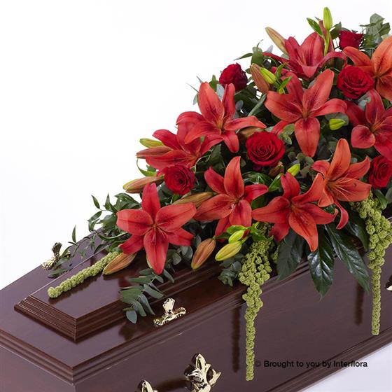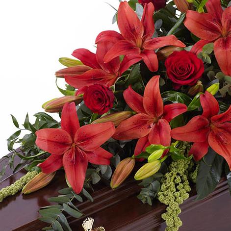 Lily and Rose Casket Spray - Red 4ft